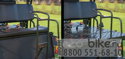 Одной из важных особенностей этого автомобиля - преобразование из гольфкара в удобный UTV. В нем предусмотрена возможность установки грузового кузова и короткой крыши, вместо заднего ряда сидений и длинной крышей над ними. Причем можно как купить дополнительный грузовой комплект за 100 тыс рублей, так и заменить задние сидения на грузовой отсек БЕСПЛАТНО!